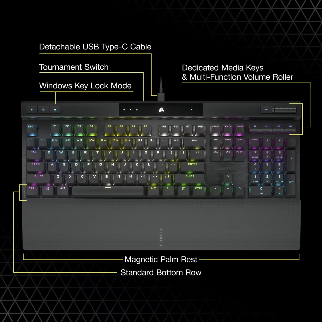 Keyboard Compatibility PC, Mac, or XBOX One with USB 3.0 or 3.1 Type-A port|Windows® 10 or macOS® 10.15|Internet connection for iCUE software download