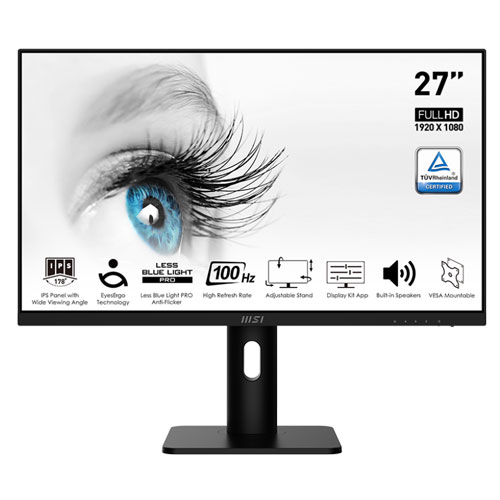 The MSI PRO MP273AP is a 27-inch FHD IPS monitor with a 100Hz refresh rate, providing smooth visuals and wide viewing angles. Featuring built-in speakers, HDMI and DisplayPort connectivity, and VESA mount support, it's perfect for both work and entertainment.